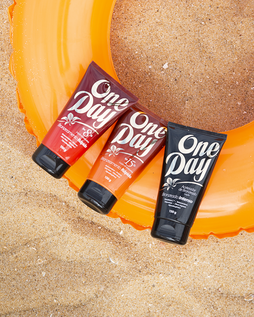 Sempre que possível, una o útil ao agradável escolhendo formulações de bronzeadores com Betacaroteno e FPS adequado, como é o caso da linha One Day que alia a provitamina a outros estimuladores de bronzeado como o Urucum e Óleos Vegetais.