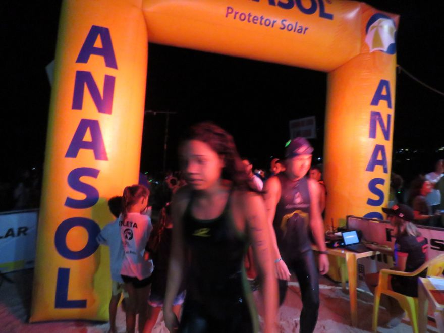 Num dia de sol e praia lotada, o agito começou no final da tarde com a chegada dos nadadores e suas equipes e aos poucos o clima foi ficando festivo e de muita expectativa com a proximidade da noite. Após escurecer completamente (19:30h), foi dada a largada da categoria 200m kids e como esperado, com muita vibração dos pais e professores. A segunda bateria a entrar na água foi a de 800m para os iniciantes e inseguros, que teve um percurso desafiador na escuridão da noite. A última bateria foi a da prova principal de 2km que foi um grande espetáculo para os presentes, pois o percurso desse ano fez com que metade da prova fosse bem próxima à praia e com o acessório luminoso (obrigatório) que os nadadores usavam, o público pode apreciar o cardume de luzes e sentir a emoção da competição.