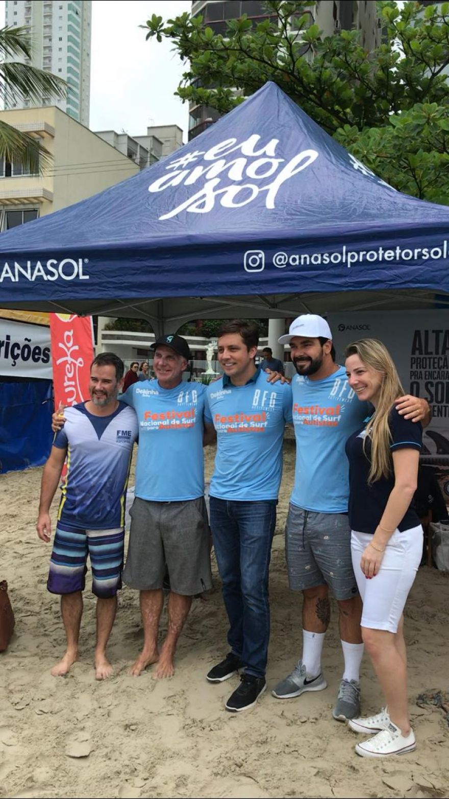 A 5ª edição do Festival Nacional de Surf para Autistas foi organizada pela Surf Escola BC, FME (Fundação Municipal de Esportes) e AMA Litoral e contou com o apoio de várias marcas parceiras. A Anasol, como grande incentivadora do esporte, não ficou de fora e se juntou à causa pelo quinto ano consecutivo garantindo a proteção de todos.