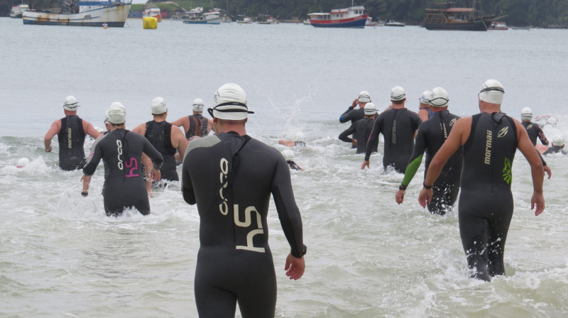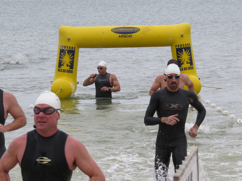 A transição dos nadadores acontece na areia da praia, deixando a competição bem vibrante e participativa pelos competidores e espectadores, que ficam torcendo minuto após minuto.