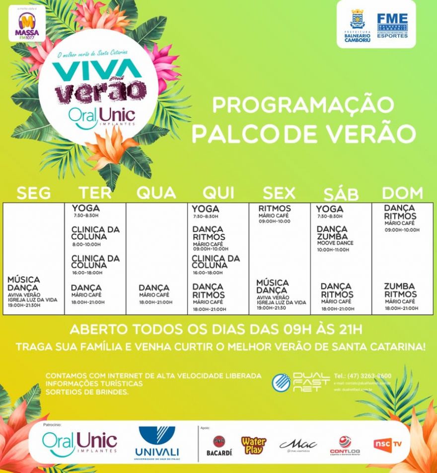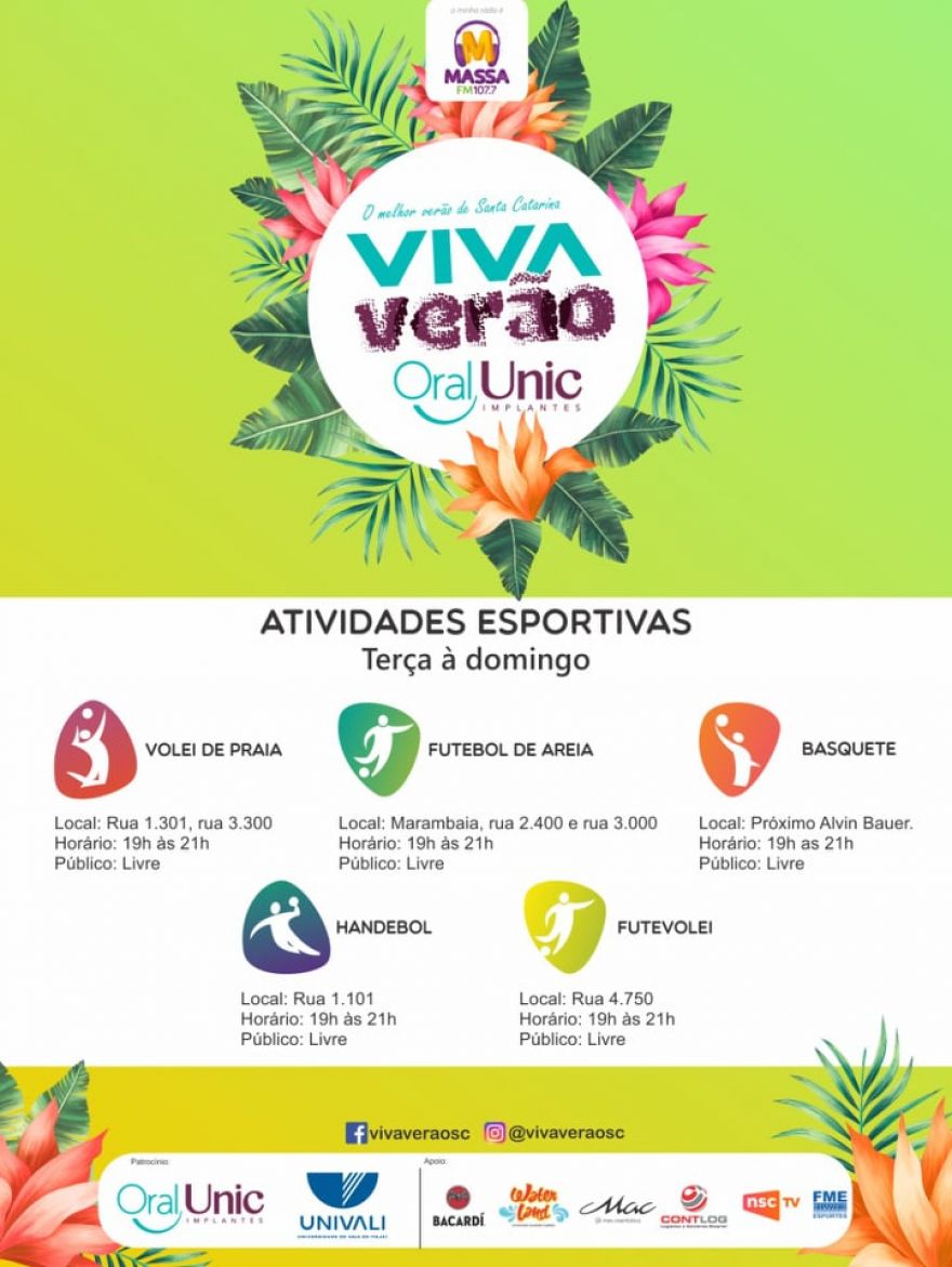 Durante o mês de janeiro a prefeitura de Balneário Camboriú juntamente da Fundação Municipal de Esportes e outros parceiros, realiza na praia central a ação “Viva Verão” com o intuito de oferecer atividades de lazer e entretenimento para a população.