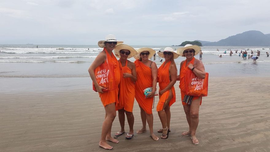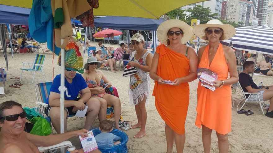 Usando cangas da cor laranja, as Amigas de BC estenderam o dezembro laranja para janeiro também e assim criaram uma grande corrente do bem, compartilhando dicas, conversando e principalmente conscientizando aqueles que se dispunham a escutar e receber os protetores.