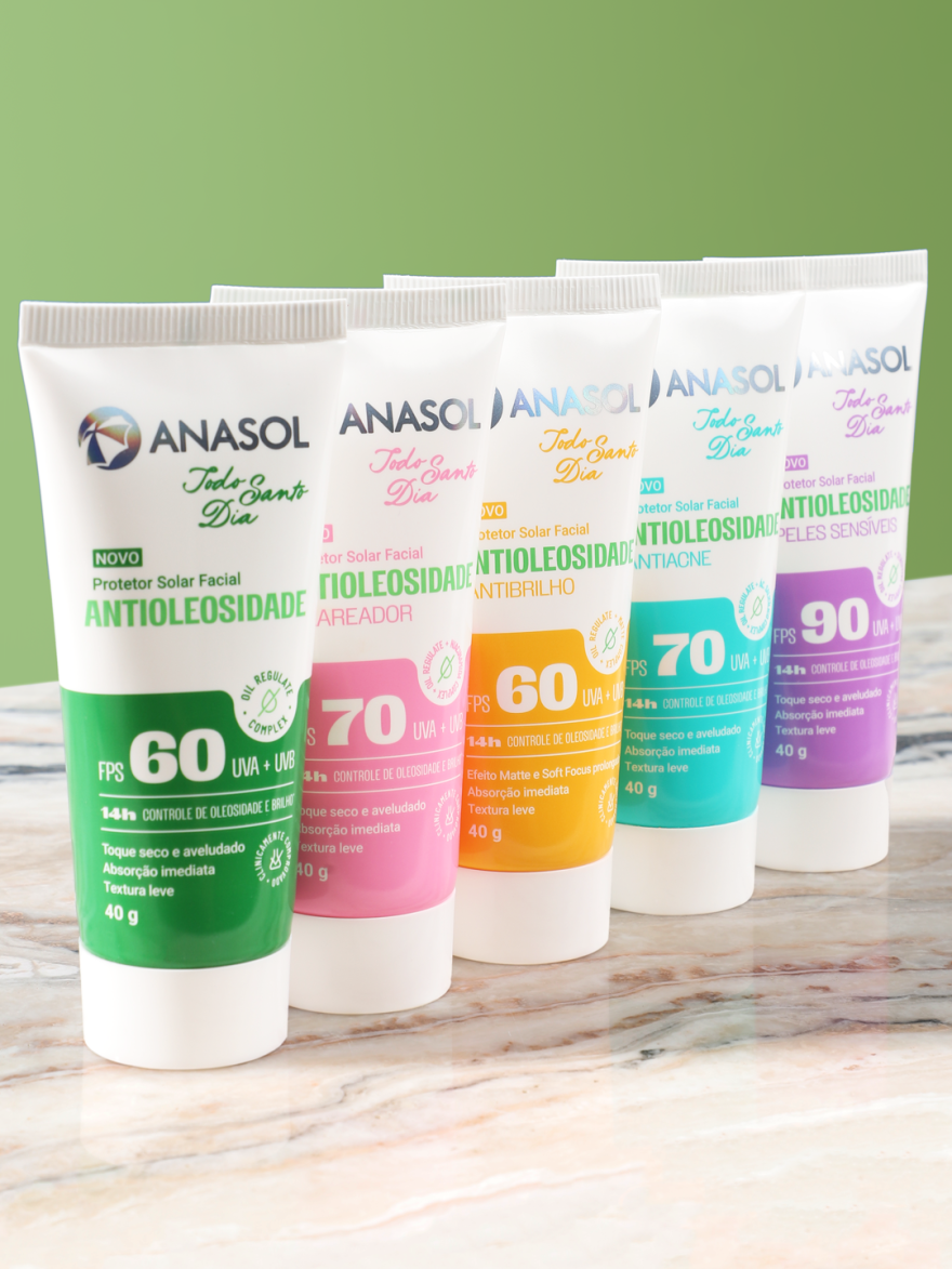 Quando o assunto é proteção solar diária, a linha Todo Santo Dia da Anasol vem ganhando destaque por oferecer fórmulas inteligentes, com toque seco, até 14h de controle de oleosidade e diferentes finalidades para necessidades específicas da pele.