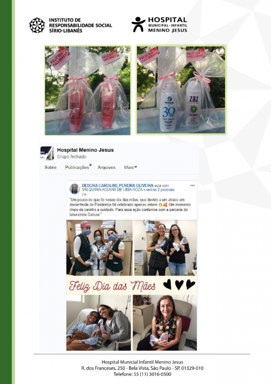 ● Hospital Municipal Infantil Menino Jesus (apoiado pelo Instituto Sírio Libanês) – São Paulo: o hospital pediátrico atende mais de 20 especialidades em diversas modalidades clínicas para cuidar da população infantil de todo o município de São Paulo.
