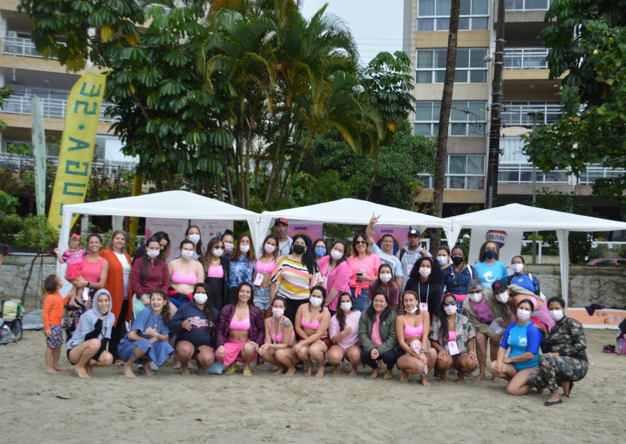 Para finalizar o mês #OutubroRosa, compartilhamos com vocês alguns registros do encontro que aconteceu no dia 17 de outubro de 2021, na praia das Astúrias. O evento foi promovido pelo D. BeachClub e Associação de Surf Feminino, e teve como parceira a Prefeitura do Guarujá/SP.