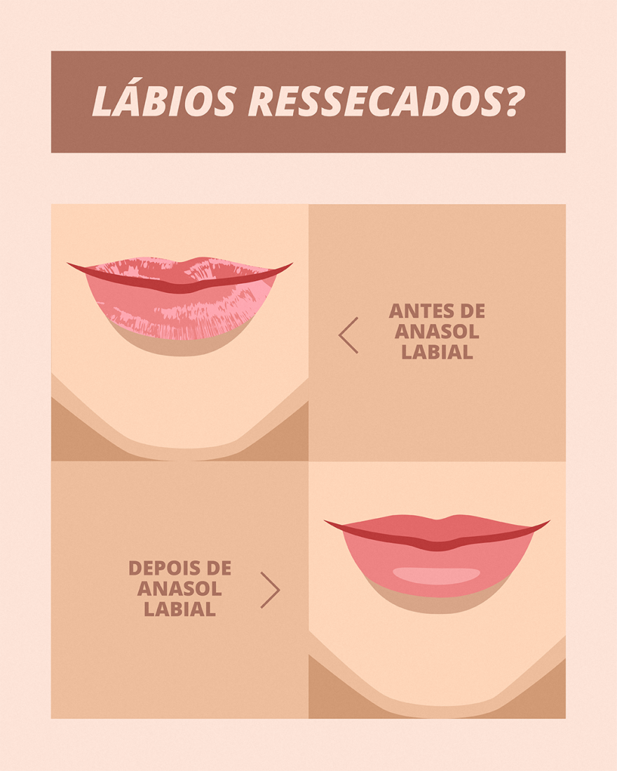 Prático e compacto, Anasol Protetor Labial de uso diário, está disponível nos aromas de Açaí e Morango (FPS 60), Coconut (FPS 60) ou Menta (FPS 45). Ele protege os lábios dos raios UVA e UVB e ainda hidrata intensamente a pele labial evitando o ressecamento causado pelo vento, frio e sol em excesso. O protetor labial também pode ser utilizado para proteger os cantos do nariz, a testa e orelhas, que são regiões que também necessitam de atenção extra.