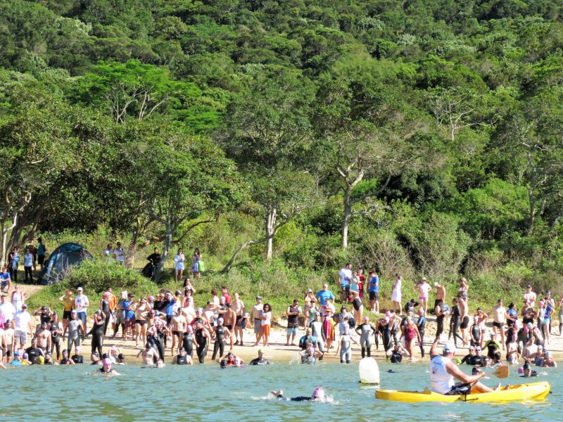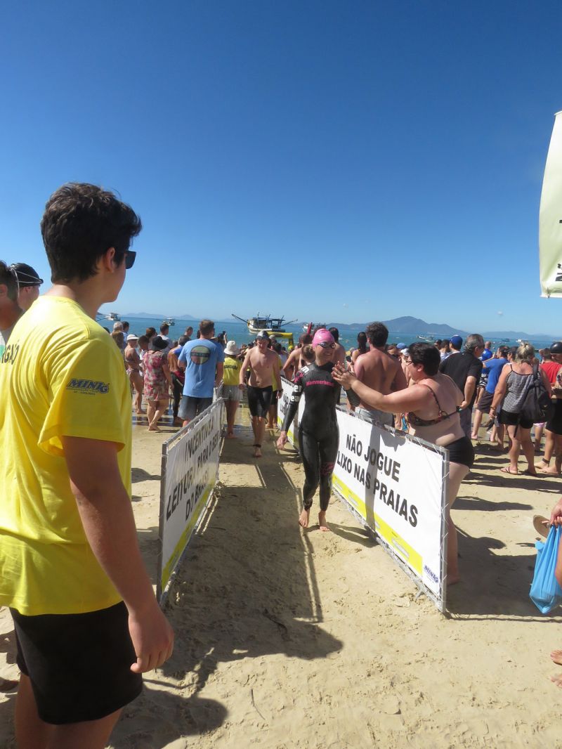 O evento começo no sábado com a prova de 3km onde 250 nadadores foram caminhando pela trilha até a paradisíaca praia da Lagoa, de onde vieram nadando até Zimbros.