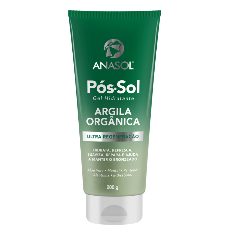 A pele necessita de cuidados diários para manter-se saudável, especialmente após a exposição solar. Anasol Gel Pós-Sol Argila é indicado para aliviar a pele sensibilizada e avermelhada pelo excesso de sol. Sua fórmula contém argila orgânica rica em minerais que auxilia na manutenção da integridade da pele, associada à Aloe Vera, α-Bisabolol, Alantoína, Pantenol (Vitamina B5) e mentol que conferem excelentes propriedades calmantes, de regeneração celular, refrescância e hidratação. Ajuda a manter o bronzeado por mais tempo.