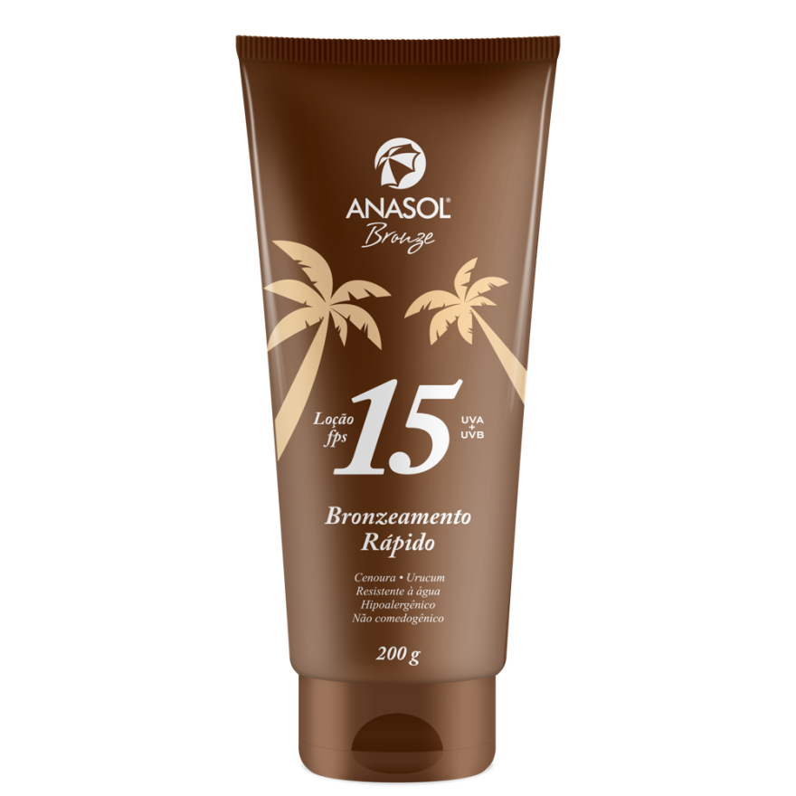 Finíssima loção bronzeadora de toque seco, enriquecida com extratos naturais de Cenoura e Urucum, deixa a pele bronzeada e hidratada. Aumenta 15 vezes a proteção natural da pele exposta aos raios UVB. Contém proteção UVA equivalente a, no mínimo, 1/3 do FPS declarado (proteção UVB). Oferece média proteção contra queimaduras solares. Dermatologicamente testado, formulado de maneira a minimizar possível surgimento de alergia.