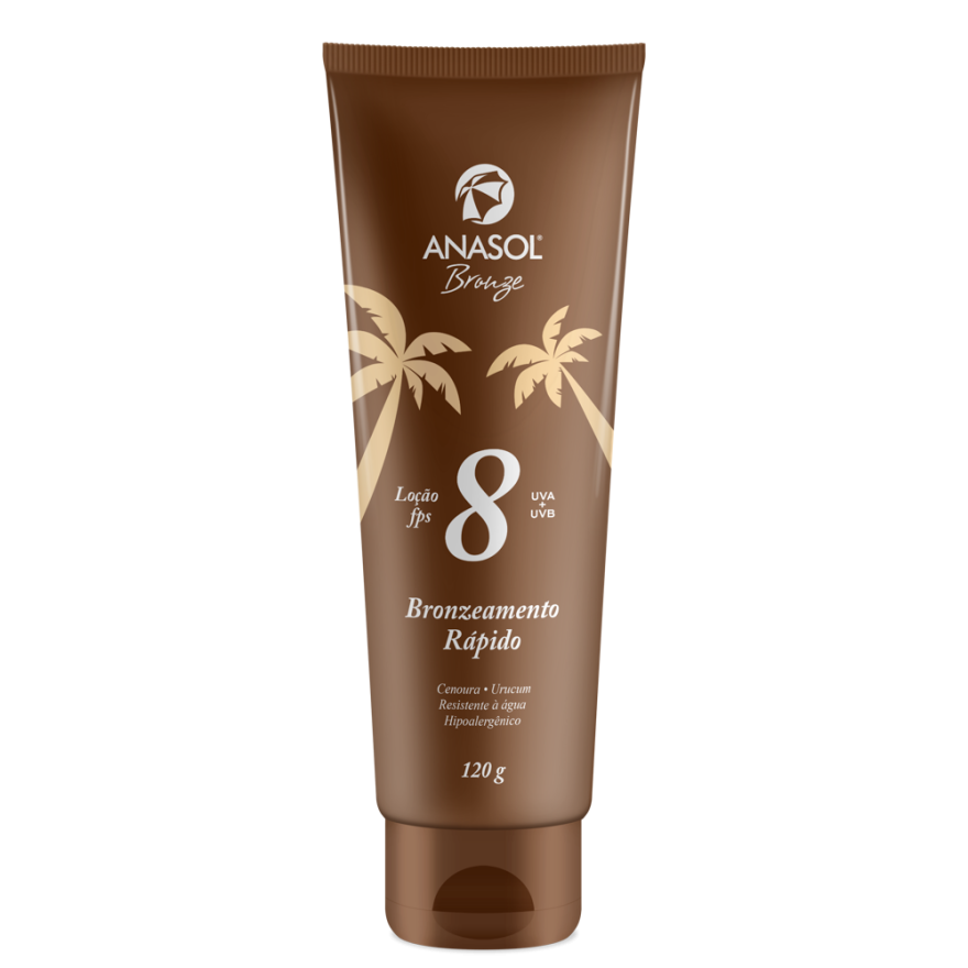 Finíssima loção bronzeadora de toque seco, enriquecida com extratos naturais de Cenoura e Urucum. Deixa a pele bronzeada e hidratada. Aumenta 8 vezes a proteção natural da pele exposta aos raios UVB. Contém proteção UVA equivalente a, no mínimo, 1/3 do FPS declarado (proteção UVB). Oferece baixa proteção contra queimaduras solares. Dermatologicamente testado, formulado de maneira a minimizar possível surgimento de alergia.