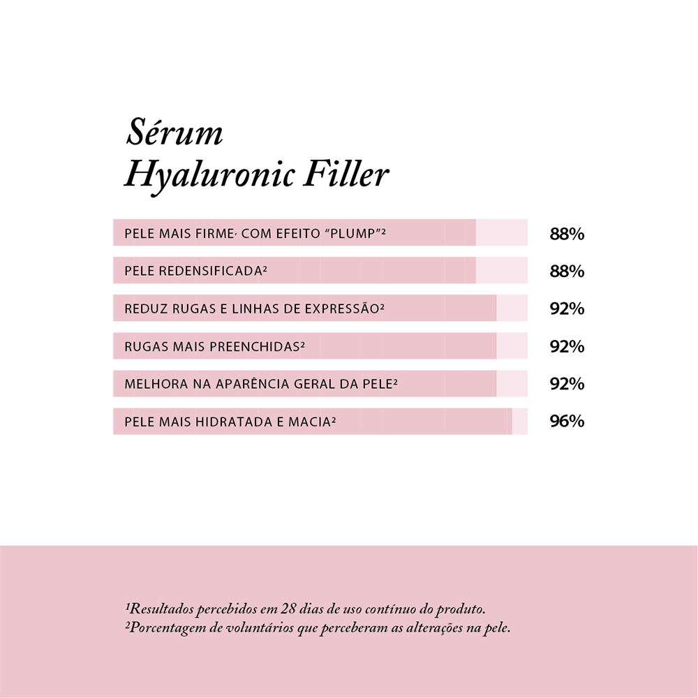 Com ação pro-age, Hidrabene Sérum Hyaluronic Filler contém uma potente combinação de ativos hidratantes e antioxidantes que protegem contra o envelhecimento fisiológico da derme e estimulam a síntese de colágeno e proteínas. O resultado é uma pele mais firme, redensificada e com rugas preenchidas. Produto oil free, não comedogênico, hipoalergênico, formulado de maneira a minimizar possível surgimento de alergia.