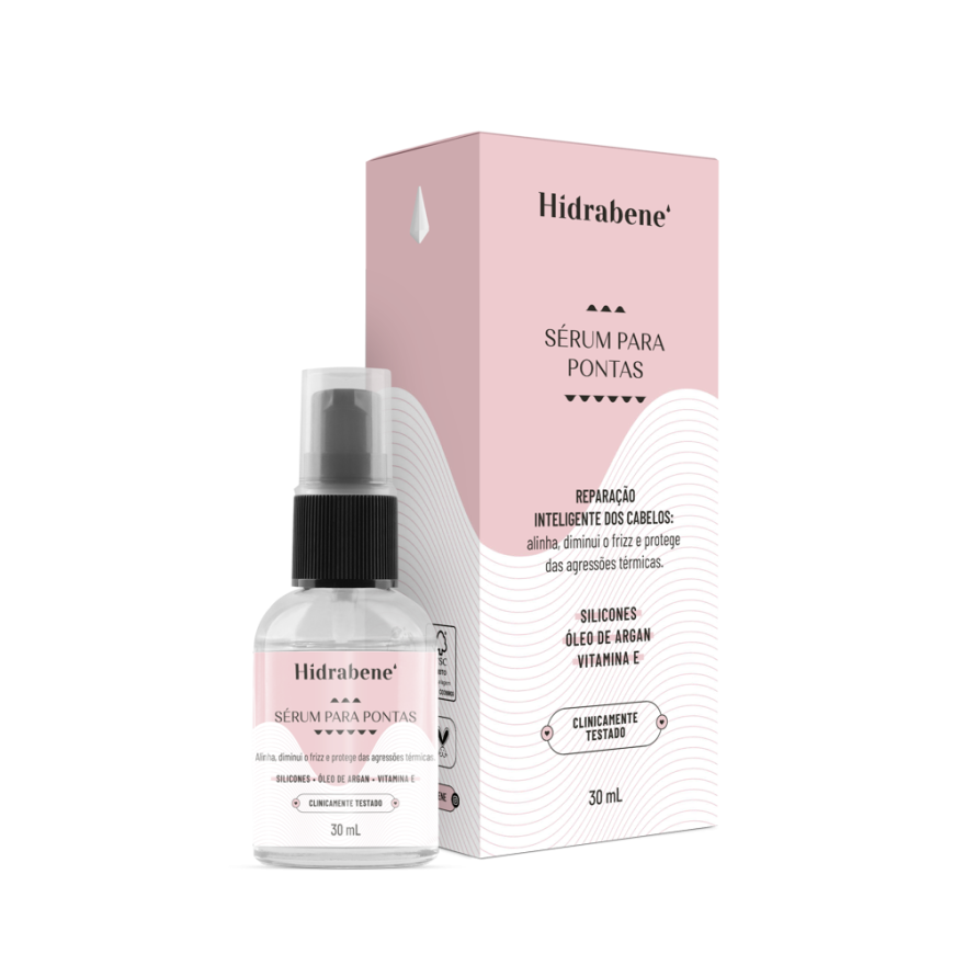 Fórmula de reparação inteligente, desenvolvida para alinhar e proteger os cabelos contra as agressões térmicas dos danos causados pelo secador e chapinha. Hidrabene Sérum para Pontas contém silicones que tratam os fios exatamente onde a cutícula está danificada, formando um filme uniforme, regenerador e protetor - deixando os cabelos nutridos, brilhosos e sem friz. Produto vegano, hipoalergênico, formulado de maneira a minimizar possível surgimento de alergia.